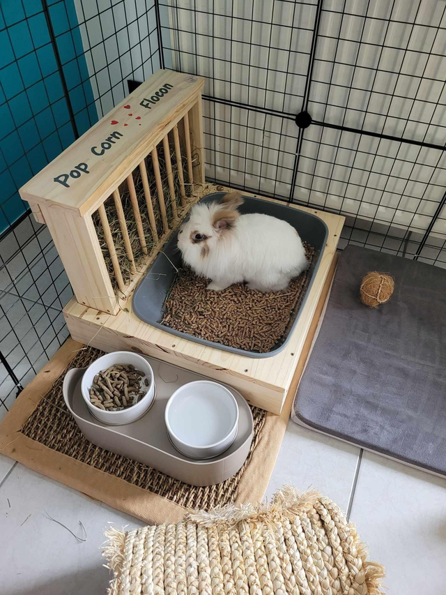 Tout est compris gamelles, bacs, peinture et le p'tit nom de "Lapinou" si vous le souhaitez !!